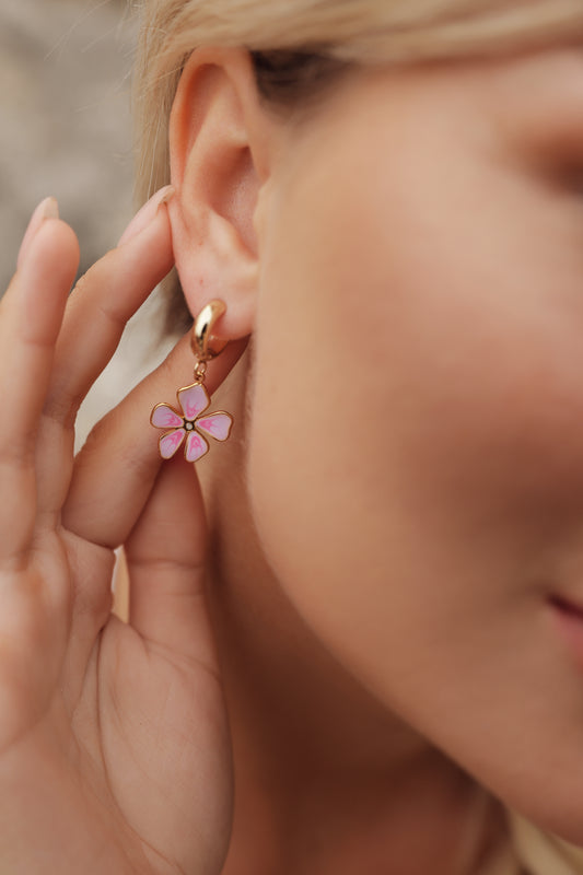 Oorringen goud met bloem lila en roze – MAE.FAE The Label
