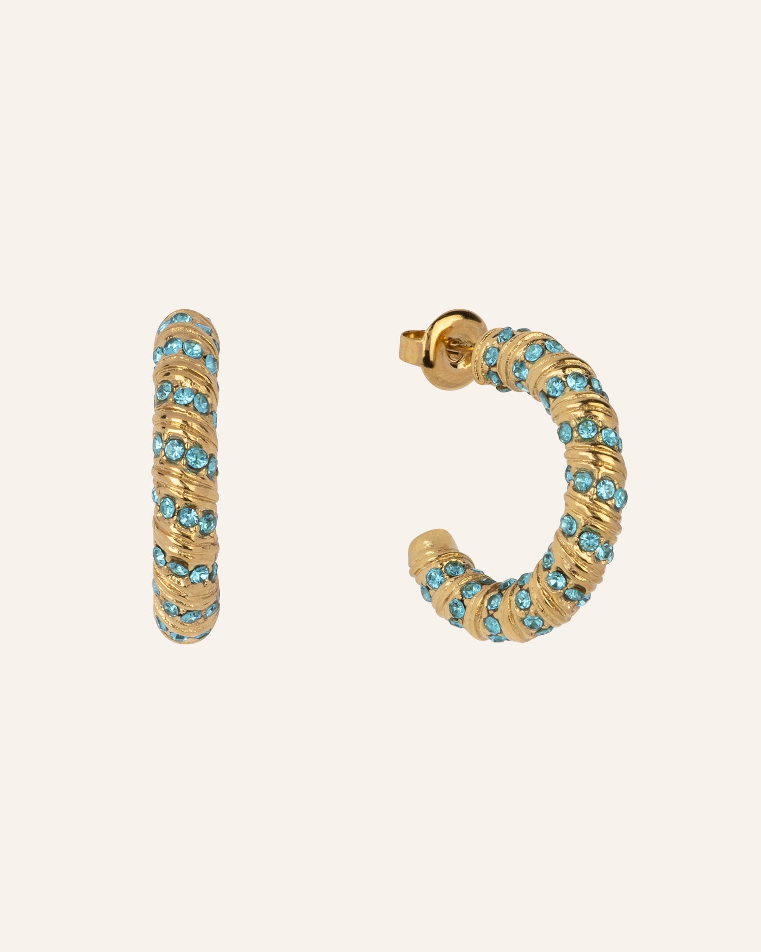 De Elodie oorbellen zijn speels, maar in een chic jasje. Het gedraaide design met frisse blauwe accenten maakt dit een echte eyecatcher. Perfect voor wie houdt van een kleurrijke twist aan een tijdloos ontwerp.